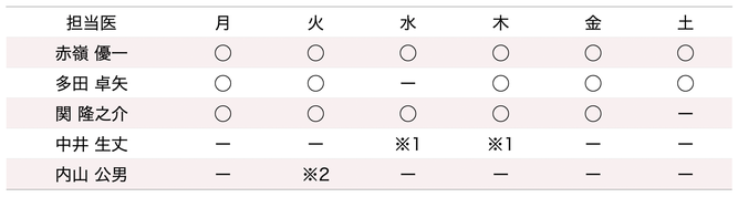 ※2 口腔外科専門の内山先生の診療は毎月2回(隔週火曜)となります。