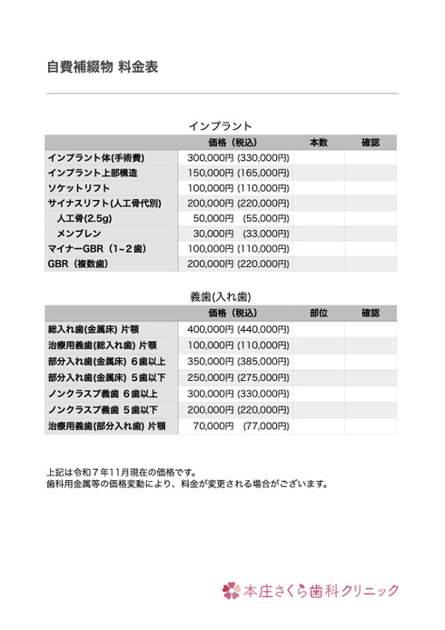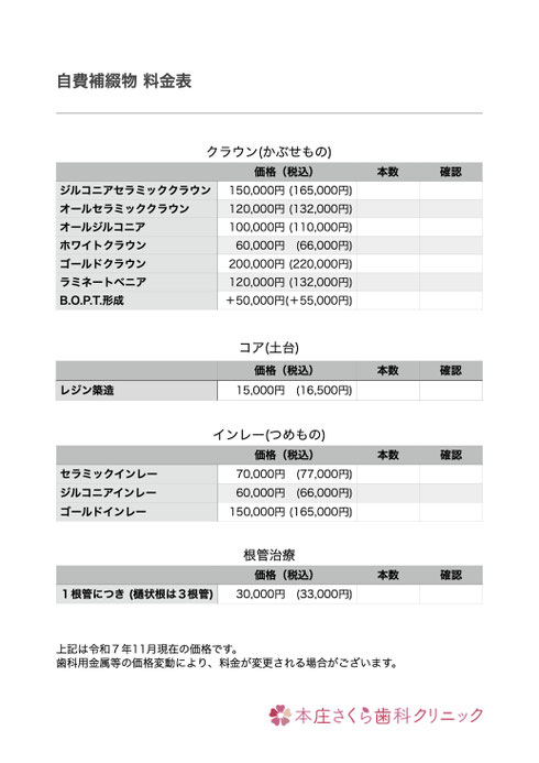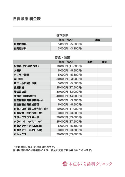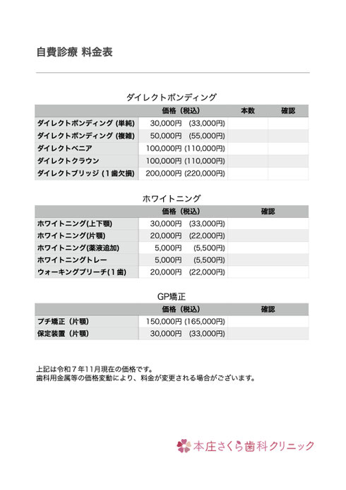 2025年11月1日に自費診療の料金を改定いたしました。自費診療を選択していただいた患者様は、より理想的な歯科治療を計画的に行うため、あらかじめ複数回の治療のご予約をお取りいただきます。